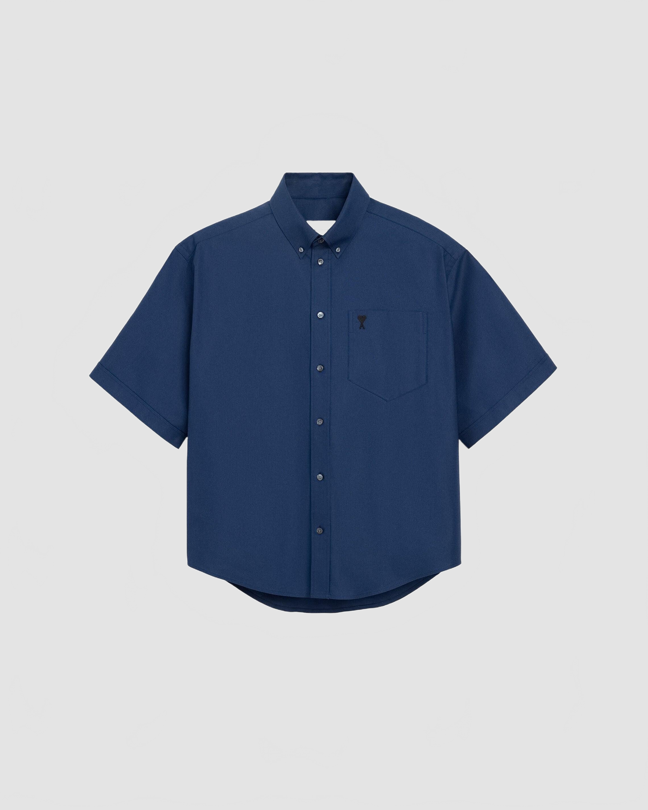 Boxy Shirt Short Sleeve Button Down Collar And Embroidered Heart Friend - Ami - Ink