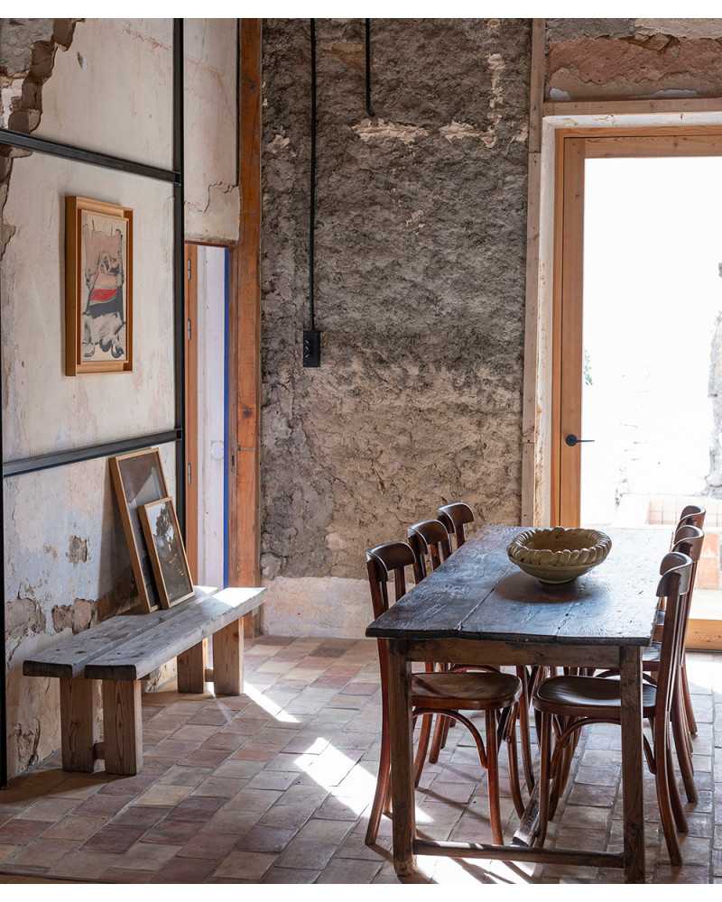 Formerly an industrial site, then a ruin, Olivier Amsellem, who rehabilitated the place, wanted to preserve the different layers of time and introduce only poor materials already present on the site.