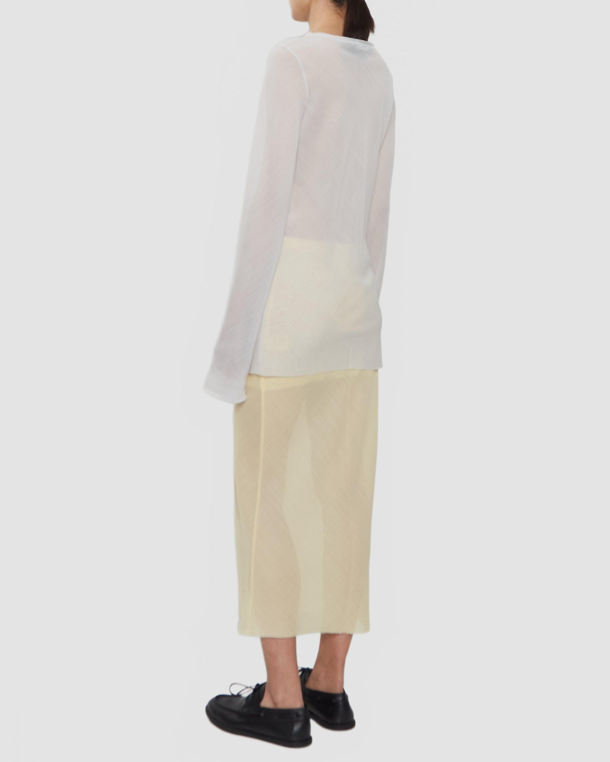 Coupe et style : Coupe décontractée, manches longues et encolure ronde. Coupe biais pour un porté non ajusté et un tombé souple. Polyvalent au quotidien, se porte seul ou en superposition pour varier les silhouettes.