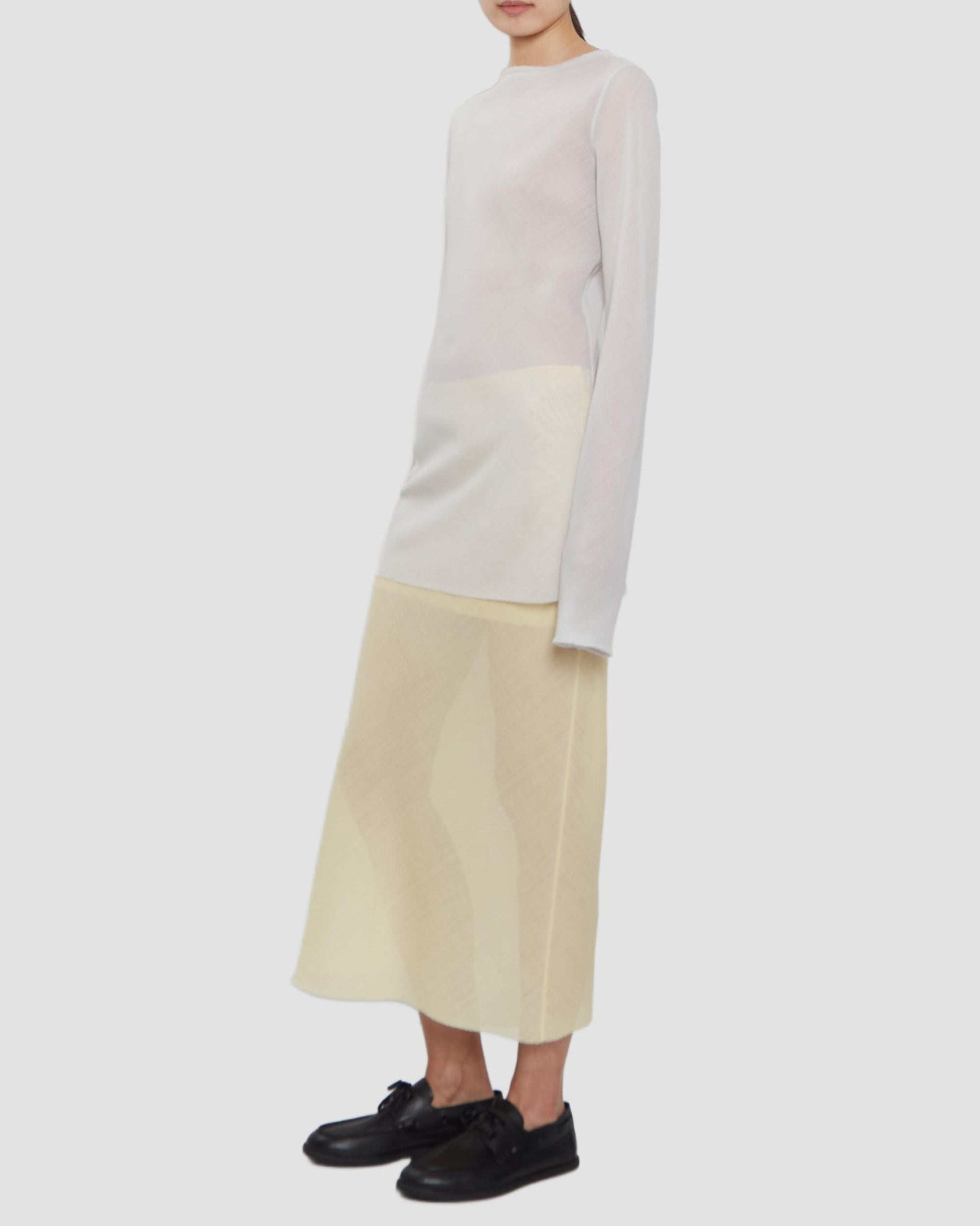- Tissu : gaze de laine légère et transparente en coupe biais
