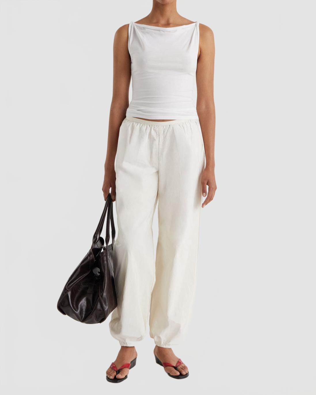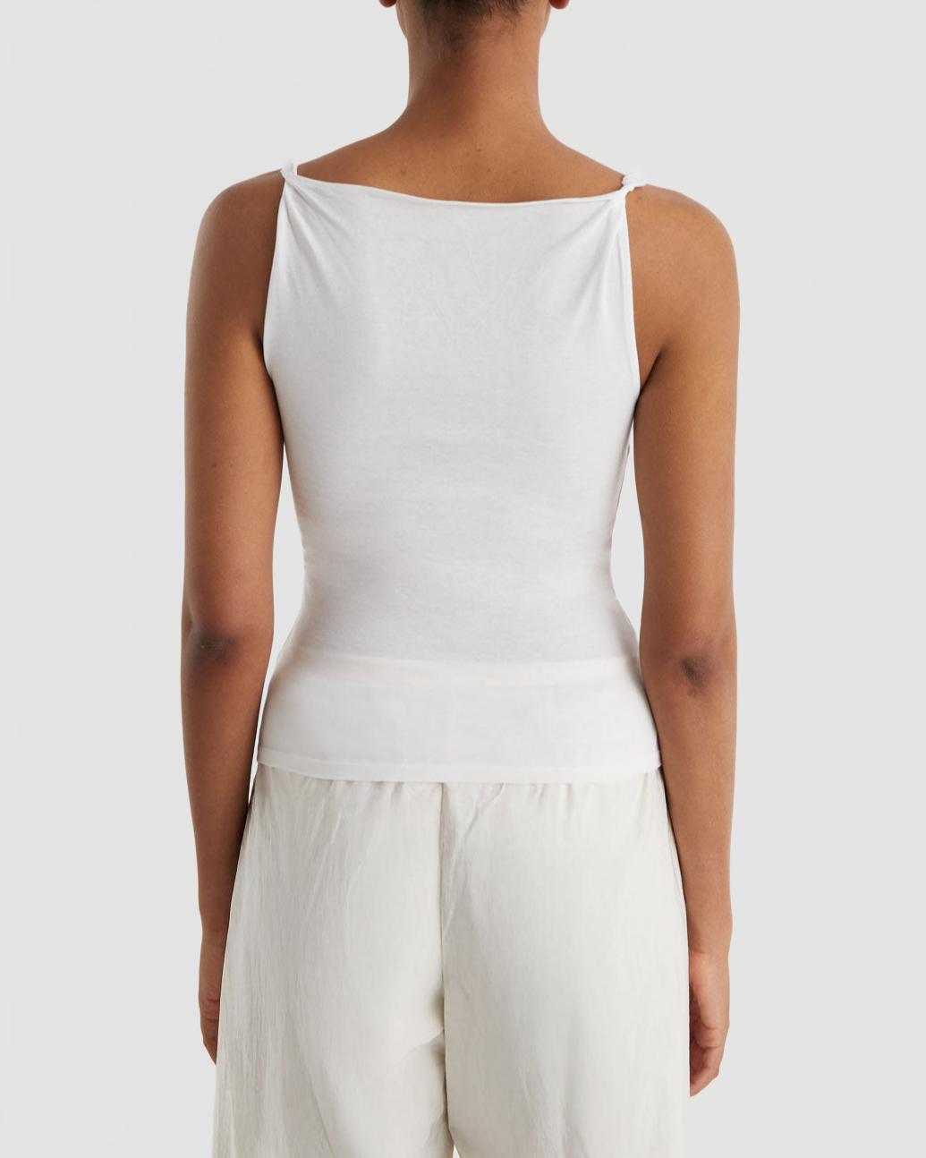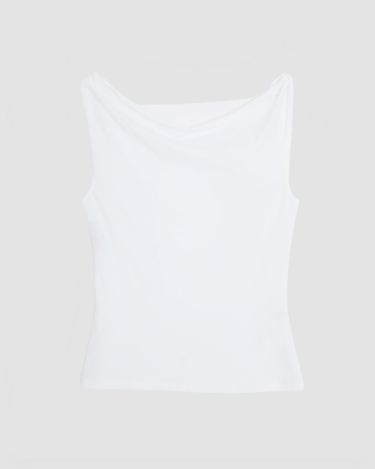 Coupe épurée et minimaliste, idéale pour être portée seule ou en superposition. Les épaules torsadées créent un point focal discret qui modernise un basique, adapté à des looks casual ou plus travaillés.