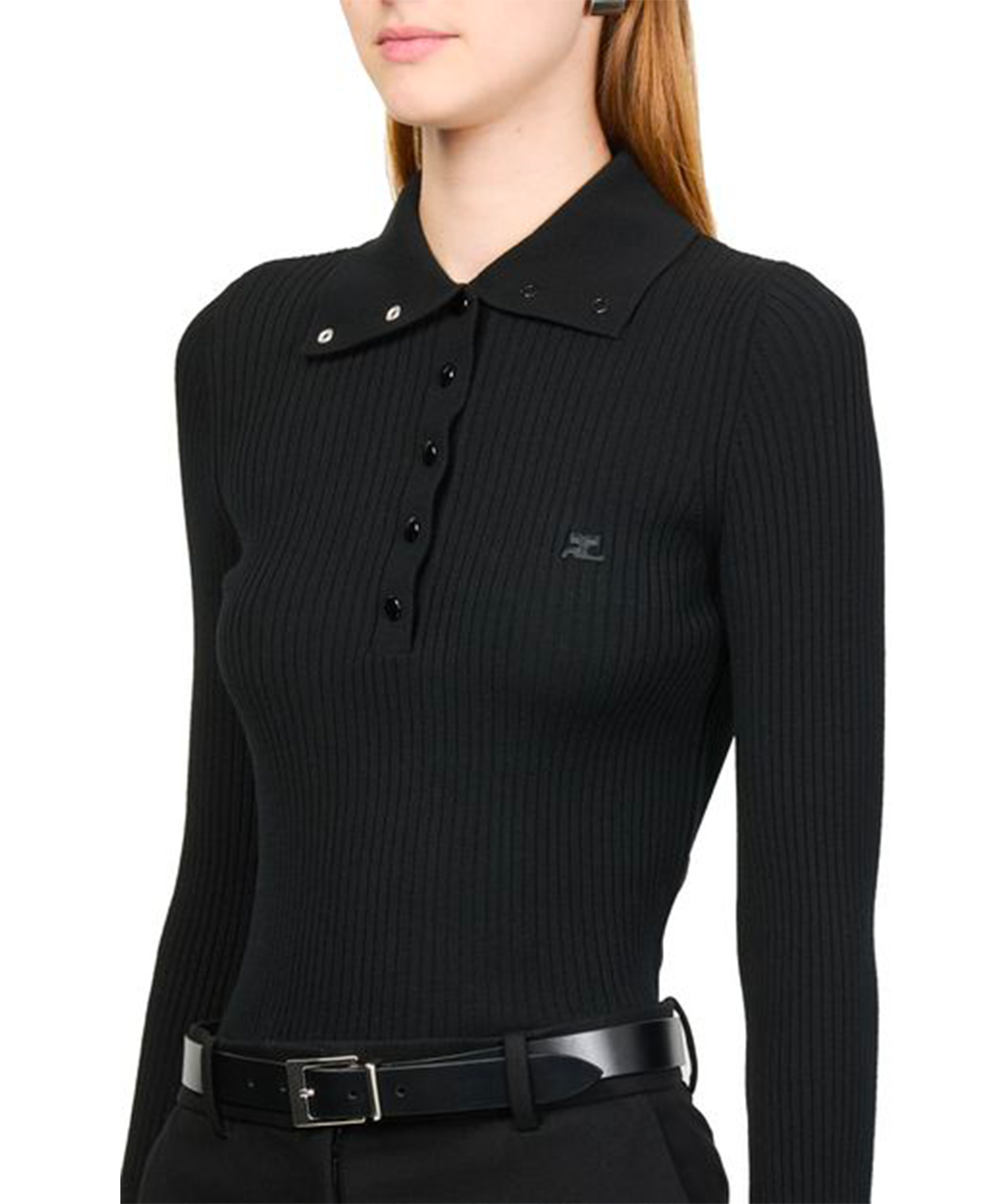 Polo côtelé à manches longues avec col et manches boutonnés. Logo AC sur la poitrine.